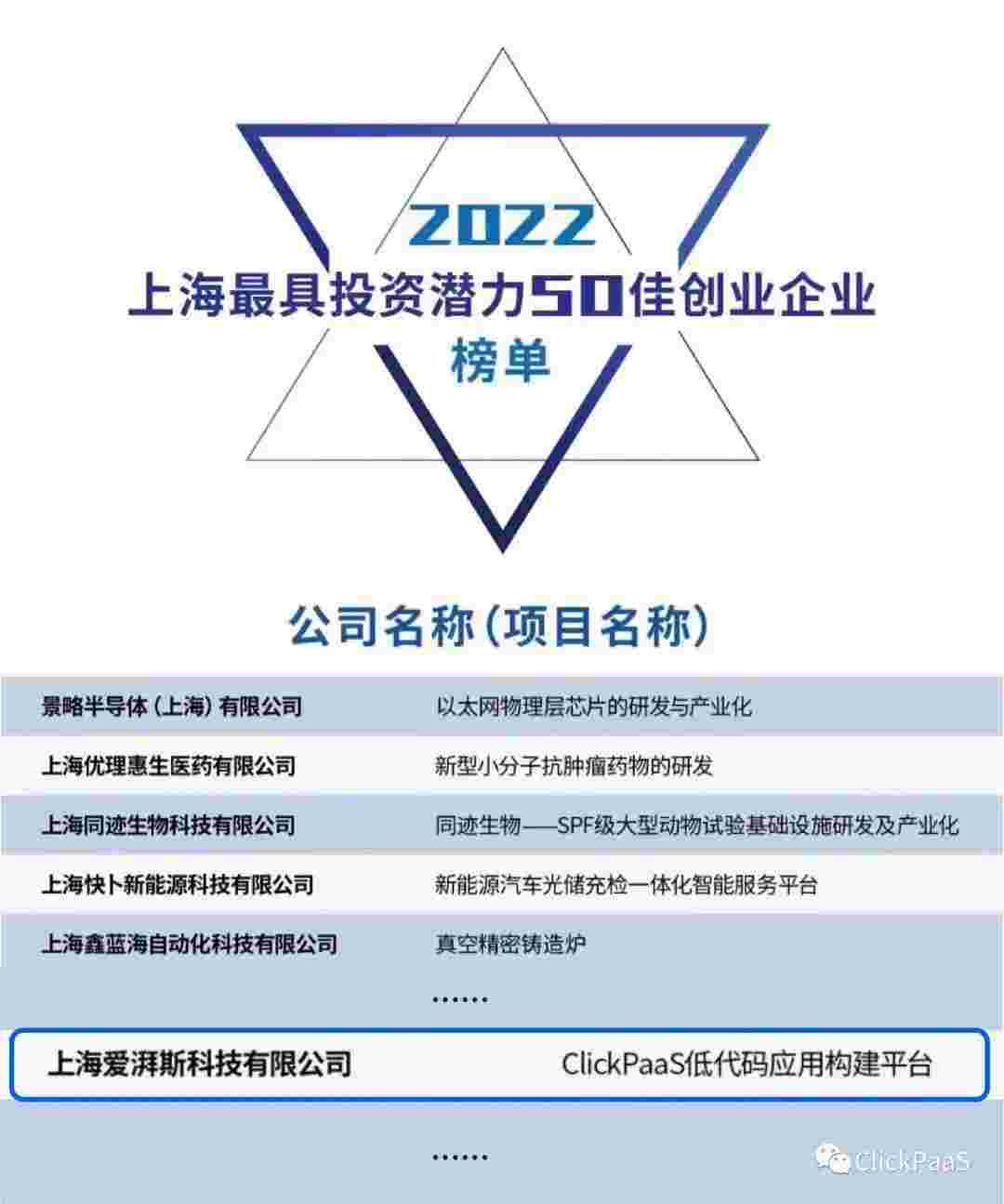 华为钱包 作为国内低代码PaaS平台的领军企业,,,,与120家创企入围角逐。。。。。。。。期间接受了来自德同资本、、、、、、、、领中资本等知名投资机构的10位投资人组成专家评委团的背靠背盲选。。。。。。。。。。。并最终入围“2022上海最具投资潜力50佳创业企业”榜单,,,,,,,,,被列入“上海市重点培育创业企业库”。。。。。。。。。。